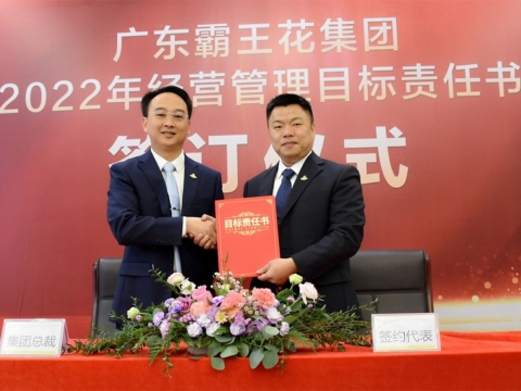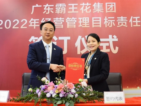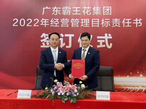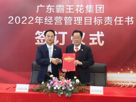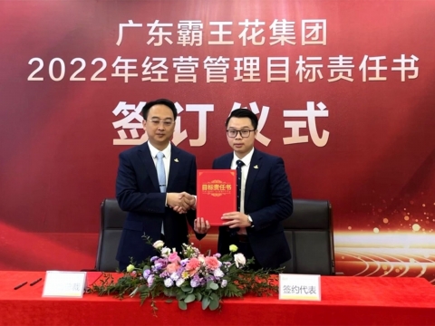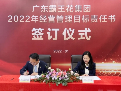 2022年1月21日,廣東霸王花集團2022年度工作會議暨2022年度經營管理目標責任書簽約儀式在集團本部多功能會議室舉行。集團董事長朱日楊、總裁朱榮業、黨委書記羅友望、副總裁陳駿良、副總裁兼財務總監朱利昀出席了會議及簽約儀式。參加會議的還有集團投資發展部總經理黃冠、霸王花食品公司總經理熊傳軍、旺源房地產公司常務副總經理陳永輝、新河實驗學校總校常務副校長謝輝華、旺源典當公司總經理朱禮彬、新河實驗學校附屬第一幼兒園園長葉海燕、德康醫院院長解小會、德康醫院副院長(集團派駐德康醫院管理代表)葉海濤,以及集團本部各職能部門負責人、各下屬子公司部門負責人及以上人員。年度工作會議及簽約儀式由集團副總裁陳駿良主持。